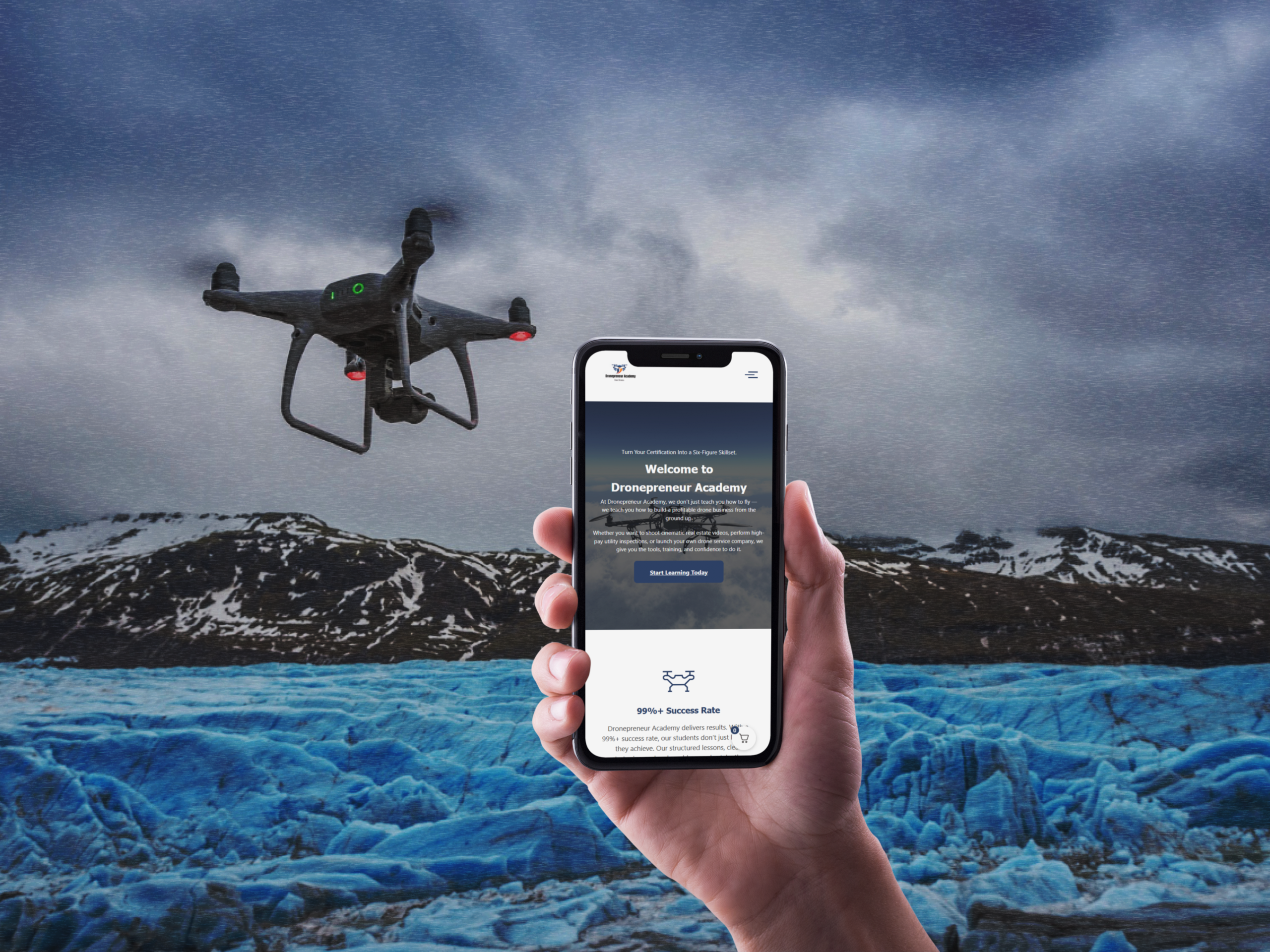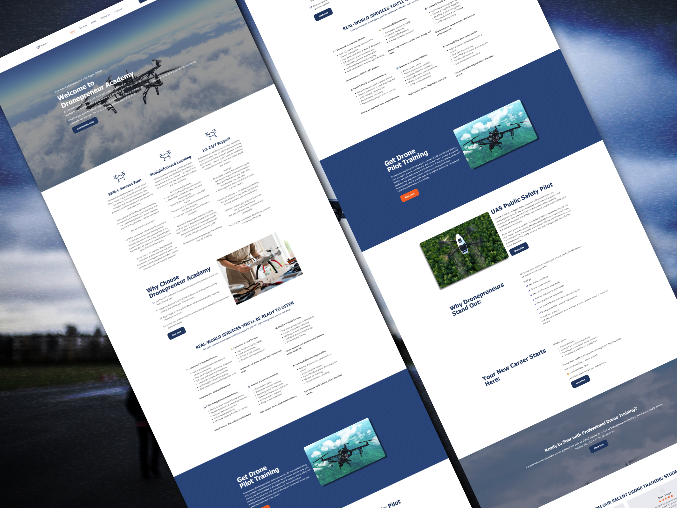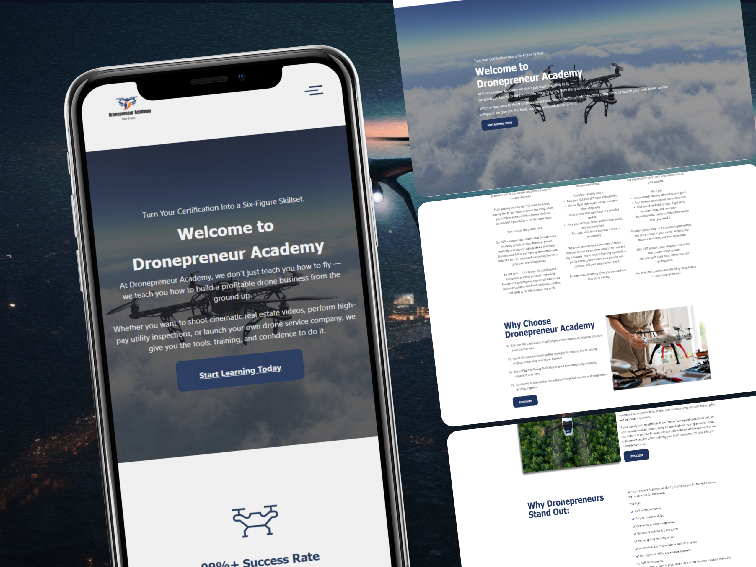 Dronepreneur Academy is an educational business focused on helping individuals start and scale drone-based services. The challenge was presenting technical and regulatory information without overwhelming beginners.